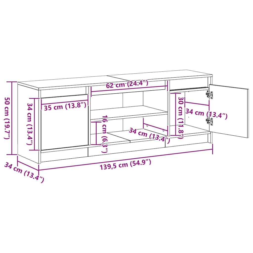 - Algemene afmetingen: 139.5 x 34 x 50 cm (L x B x H)
