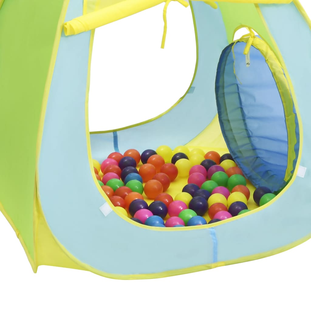 De speelgoedtent is gemaakt van polyester, waardoor hij stevig en duurzaam is. Hij bestaat uit een kubustent, een tipi-tent en een tunnel, zodat kinderen urenlang binnen kunnen spelen. Ze kunnen in de tent kruipen en spelen, waardoor hun arm- en beenspieren ontwikkelen. De meegeleverde ballen zijn geschikt om samen met vriendjes mee te spelen.