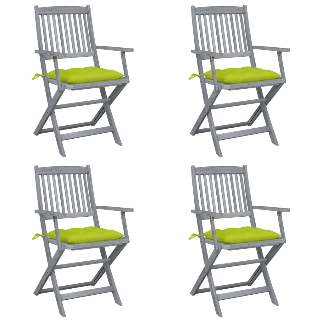 Deze moderne houten stoelenset met kussens voegt een vleugje natuurlijke stijl toe aan je tuin, patio of terras. Deze klapstoelen zijn een goede keuze als je buiten wilt eten.