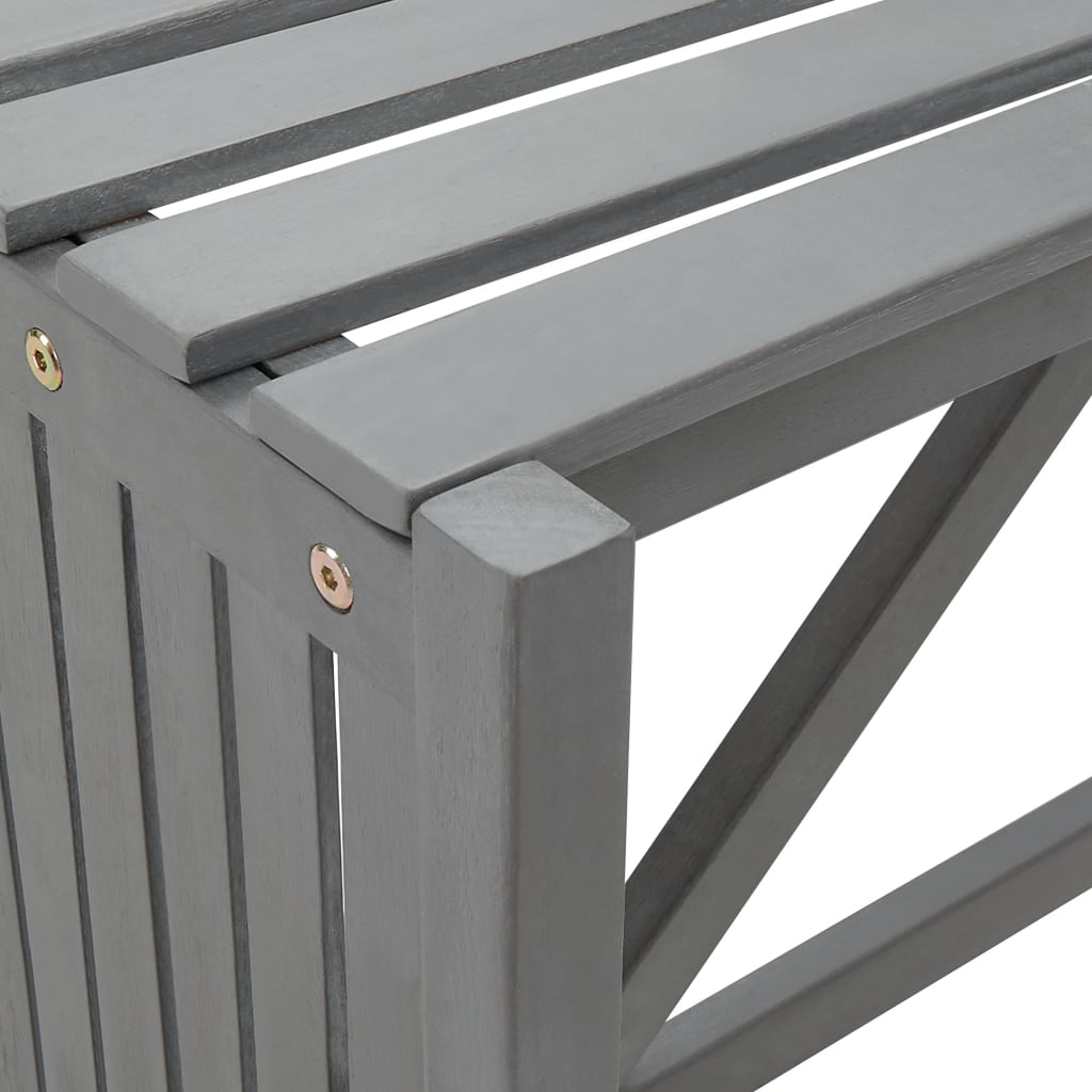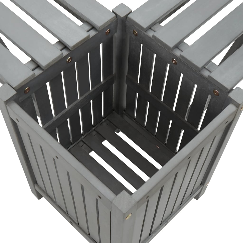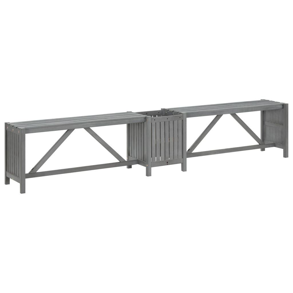Het bankje is gemaakt van massief acaciahout met greywash afwerking, waardoor het stabiel en geschikt voor buitengebruik is. De plantenbak is perfect om een verscheidenheid aan bloemen en planten in te laten groeien. Dit meubel is een uitstekende aanvulling op je tuin.