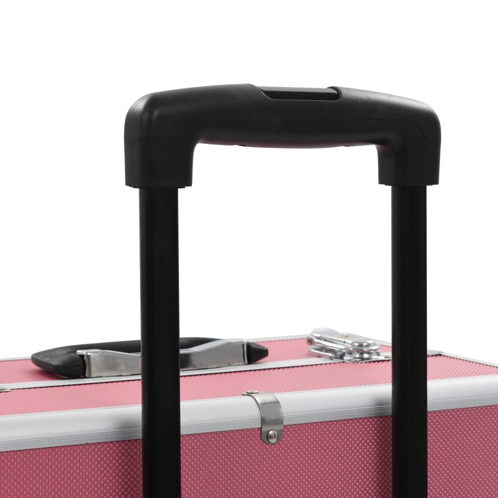Deze make-up trolley is gemaakt van hout, ABS-folie en aluminium en bewaart je cosmetica eenvoudig en houdt ze in perfecte staat. Deze make-up koffer heeft 4 niveaus en verlengbare lades in het bovengedeelte, waardoor er voldoende opslagruimte is voor je cosmetica- en schoonheidsproducten. De cosmeticakoffer heeft 4 afneembare zwenkwielen, waardoor hij gemakkelijk te verplaatsen is en overal mee naartoe kan worden genomen!